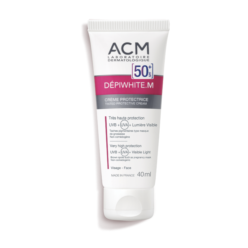 ACM Depiwhite M SPF 50+ a lightweight, invisible sunscreen formulated to prevent and reduce pigmentation disorders such as melasma and pregnancy mask. Offers very high protection against UVA/UVB rays and high-energy visible light (blue and violet). Suitable for all skin types, including sensitive skin. Water-resistant and photostable. Contains moisturizing and antioxidant ingredients to counteract skin aging .