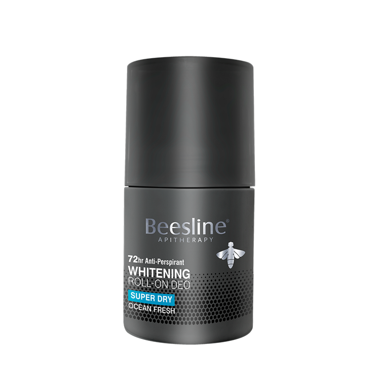 Beesline Whitening Roll-On Deo Super Dry with Silver Power and an Ocean Fresh fragrance offers powerful, long-lasting protection against sweat and body odor while keeping the underarms fresh throughout the day. Enriched with silver ions, it neutralizes bacteria and provides superior dryness. The whitening formula helps to lighten and even out skin tone, while the refreshing ocean-inspired scent ensures you feel clean and confident.