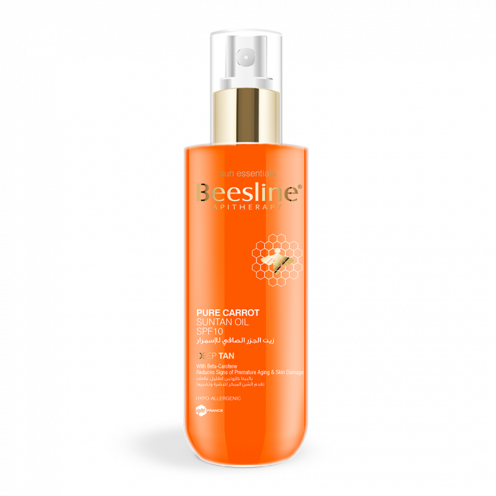 Beesline Pure Carrot Suntan Oil SPF 10 is a nourishing sun oil that helps achieve a natural tan while providing light protection against harmful UV rays. Enriched with carrot extract and other natural ingredients, it hydrates and nourishes the skin, leaving it soft, smooth, and glowing. Ideal for sun lovers, it enhances tanning while moisturizing and protecting the skin from the sun's damaging effects.