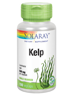 Solaray Kelp 550mg is a dietary supplement derived from Laminaria spp. seaweed, rich in iodine and folic acid. It supports healthy thyroid function, metabolism, and overall well-being. Each tablet provides 550 mg of kelp and 400 mcg of folic acid.