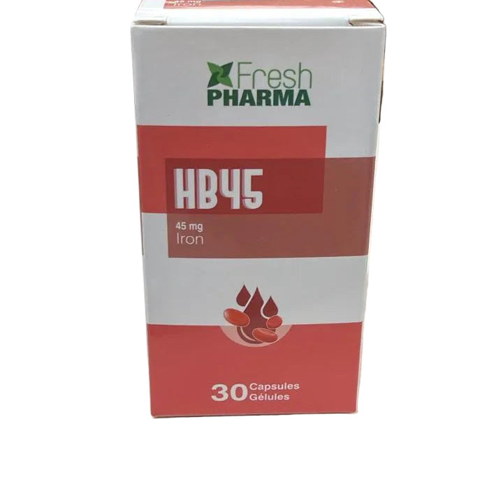 HB 45 is a dietary supplement formulated to address iron deficiency and anemia. Each capsule contains 45 mg of Iron Citrate, along with Vitamin C (75 mg), Vitamin B12 (10 mcg), and Folic Acid (500 mcg).