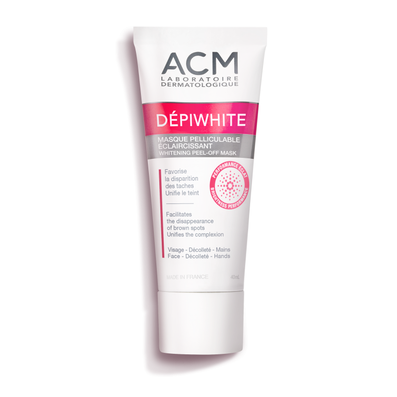 ACM Depiwhite Mask this whitening peel off mask was designed to attenuate or eliminate brown spots, limit their reappearance and unify the complexion. Intended for skins with brown spots, it forms an occlusive film at the skin surface, enabling rapid and deep penetration of the active substances. Skin hyperpigmentation is reduced, and the skin is lightened. The complexion is unified thanks to its exfoliating action.