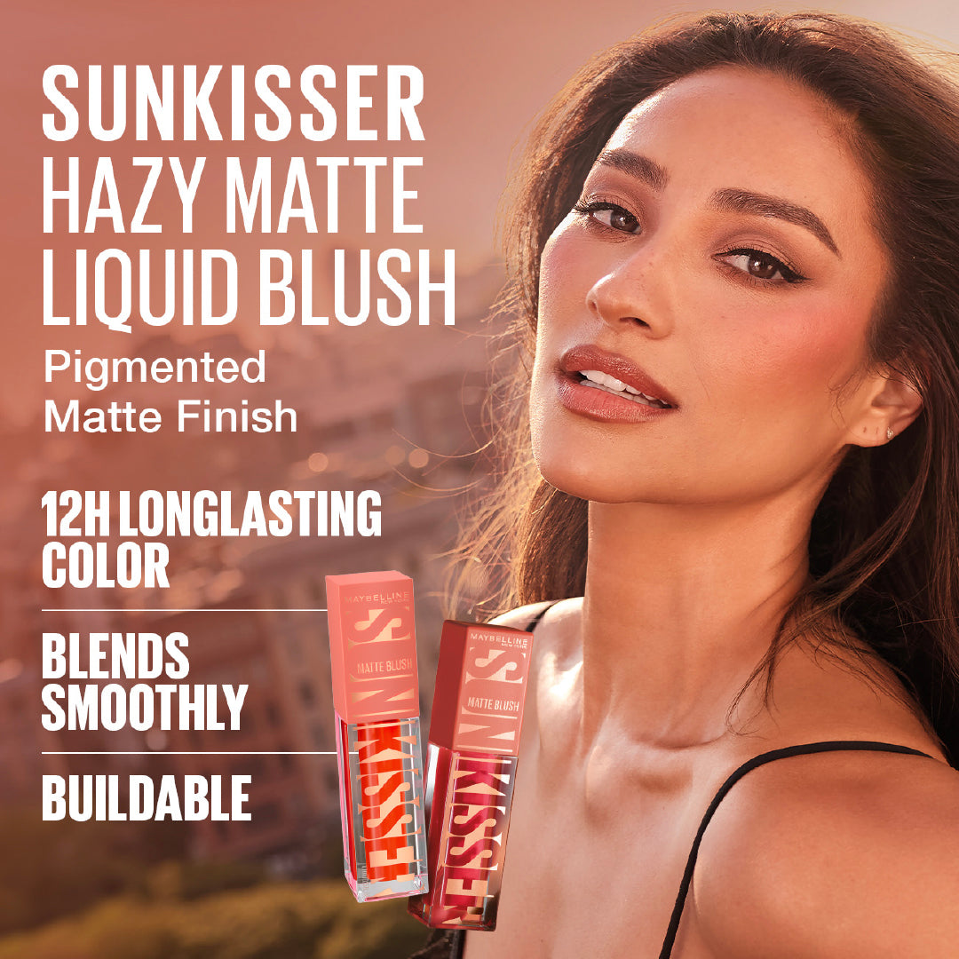 Maybelline Sunkisser Multi-use Liquid Matte Blush: delivers sunkissed cheeks that last, now in a new matte finish. Its ultra-blendable and buildable formula melts to skin for a natural glow and up to 12 hour wear. Available in 16 multi-use blush and bronze shades; mix and match to create any look from a natural flush to a dimensional lit-from-within glow.