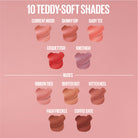 Maybelline Super Stay Teddy Tint™ Liquid Lip Tint lasts for up to 12 hours. No transfer. In 10 buildable shades.Wear it sheer, blurred, bold or even on cheeks.