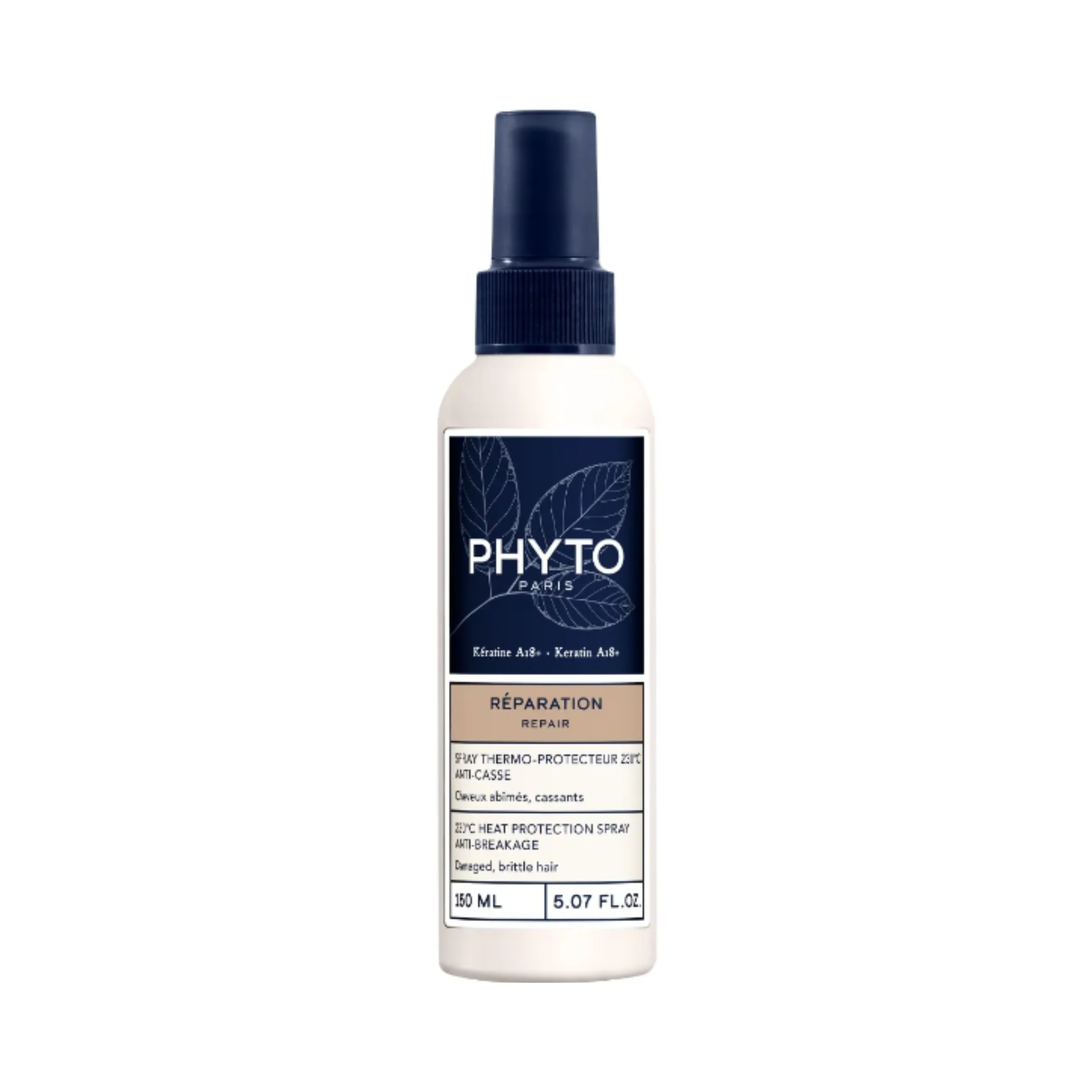Phyto Repair Heat Protecting Spray is designed to shield hair from heat damage during styling, protecting up to 230°C. It repairs and smooths frizz, enhancing shine and resilience. The formula features "Keratin A18+", a biomimetic complex of 18 amino acids derived from Black Oat and Lupin, which acts as an intra-fiber filler to rebuild and restore damaged hair fibers. An extract of white mallow is included to enhance hair shine.