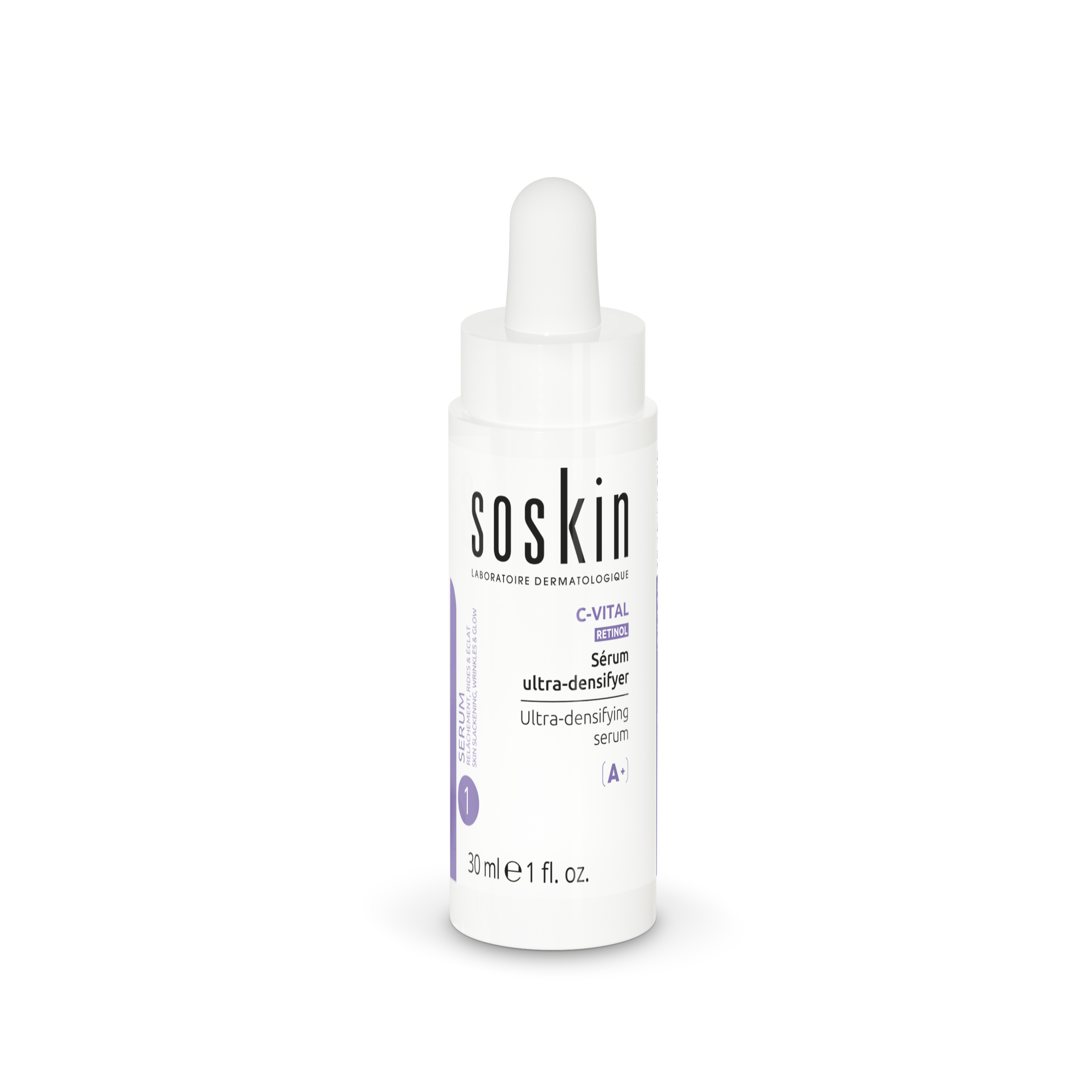 SOSKIN C-Vital Ultra Densifier Serum combines the anti-aging power of Retinyl Palmitate with the regenerative function of Centella Asiatica. A non-irritating alternative to pure Retinol, tested on sensitive skin.
