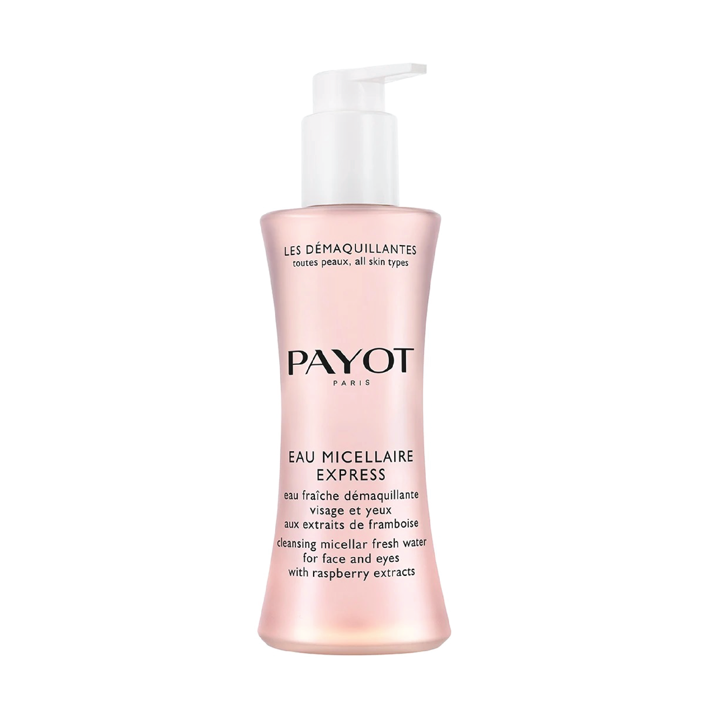 Payot Cleansing Micellar Fresh Water is a cleansing micellar fresh water for the face and eyes. It is formulated with Raspberry extracts, Micelles, and Hyaluronic Acid.