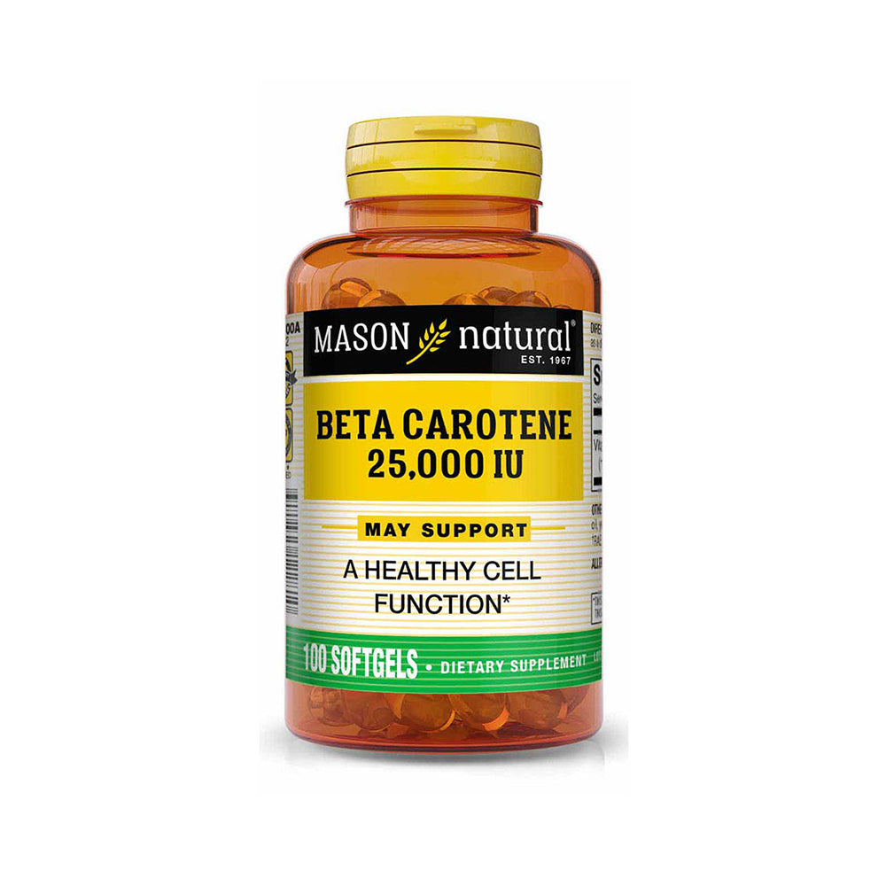 Mason Beta Carotene is a safe and easily accessible source of Vitamin A that is plentiful in carrots, sweet potatoes and other nutritious foods. Because beta carotene is soluble in water, it can travel to locations in the body that fat-soluble Vitamin A cannot. Once it has made its way to an important location in the body, it can be quickly converted to Vitamin A if needed. Vitamin A, also known as retinol, helps support healthy retina cells within the eye, which in turn supports healthy vision. Vitamin A (and beta carotene) also plays an important role in the normal transcription of DNA into RNA, which ensures genes are expressed properly and cells develop normally. This is especially important to the development of certain immune cells such as NK cells, lymphocytes, and monocytes. Like Vitamin A, beta carotene itself can be a potent antioxidant and may provide protection against free-radical damage to cells, DNA and many other parts of the body. Beta-carotene is a carotenoid, one of a group of plant pigments known to have antioxidant and other effects. Once it enters the body, it is quickly converted into vitamin A. This essential nutrient is found predominantly in yellow, orange, and dark green vegetables such as carrots, sweet potato, spinach and kale, and in fruits such as cantaloupe and apricots. Having the normal levels of vitamin A is key for good vision, strong immunity and general health.