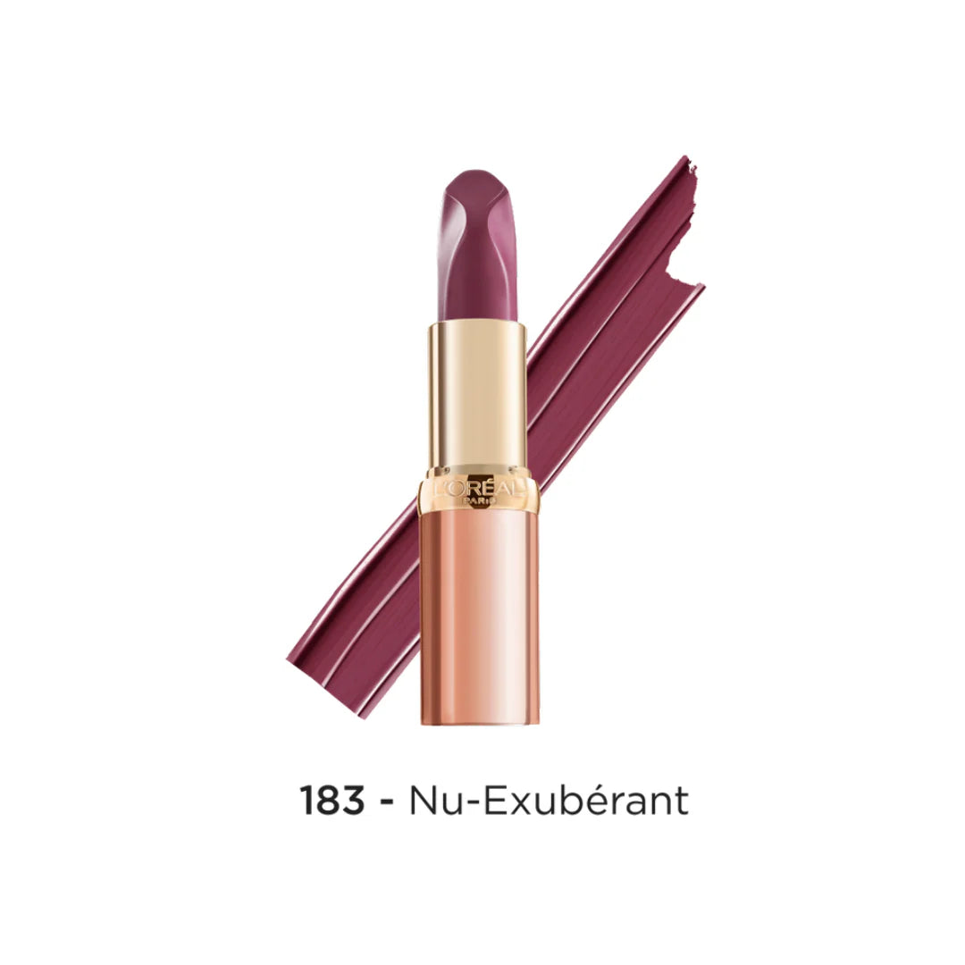 l'oréal paris color riche les nus lipstick offers a luxurious, creamy formula with rich color payoff in a range of nude shades. this lipstick is designed to enhance your natural lip color while providing a smooth, satin finish. infused with nourishing ingredients such as omega 3, vitamin e, and argan oil, it keeps lips hydrated and soft throughout the day. the color riche les nus lipstick line celebrates the beauty of nude shades, offering a variety of tones that flatter different skin tones and create a polished, elegant look. perfect for everyday wear or a subtle, refined look for special occasions.