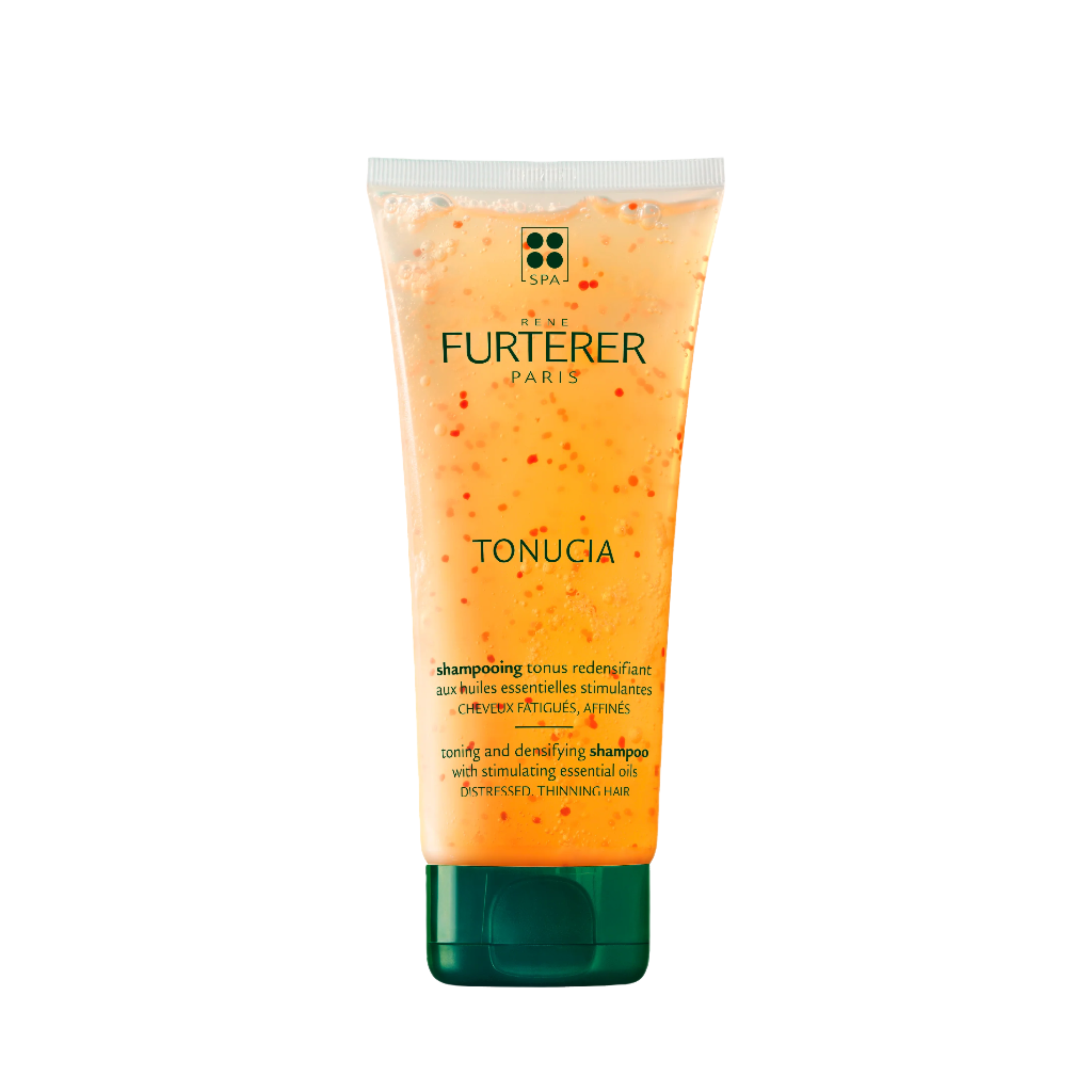 Rene Furterer Tonucia Toning and Densifying Shampoo is formulated to combat the internal (biological clock) and external (stress, environmental) effects of aging on the scalp and hair