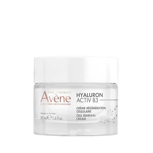 Avène Hyaluron Activ B3 Cellular Regeneration Cream is a concentrated cream with pure hyaluronic acid (0.2%) and niacinamide (6%), which acts on the signs and cause of ageing. Skin feels firmer, and wrinkles appear reduced after use.