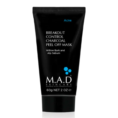 m.a.d peel off mask breakout packed with a superstar ingredient, activated charcoal, helps draw out toxins, dirt, and grime which can cause acne and blackheads.