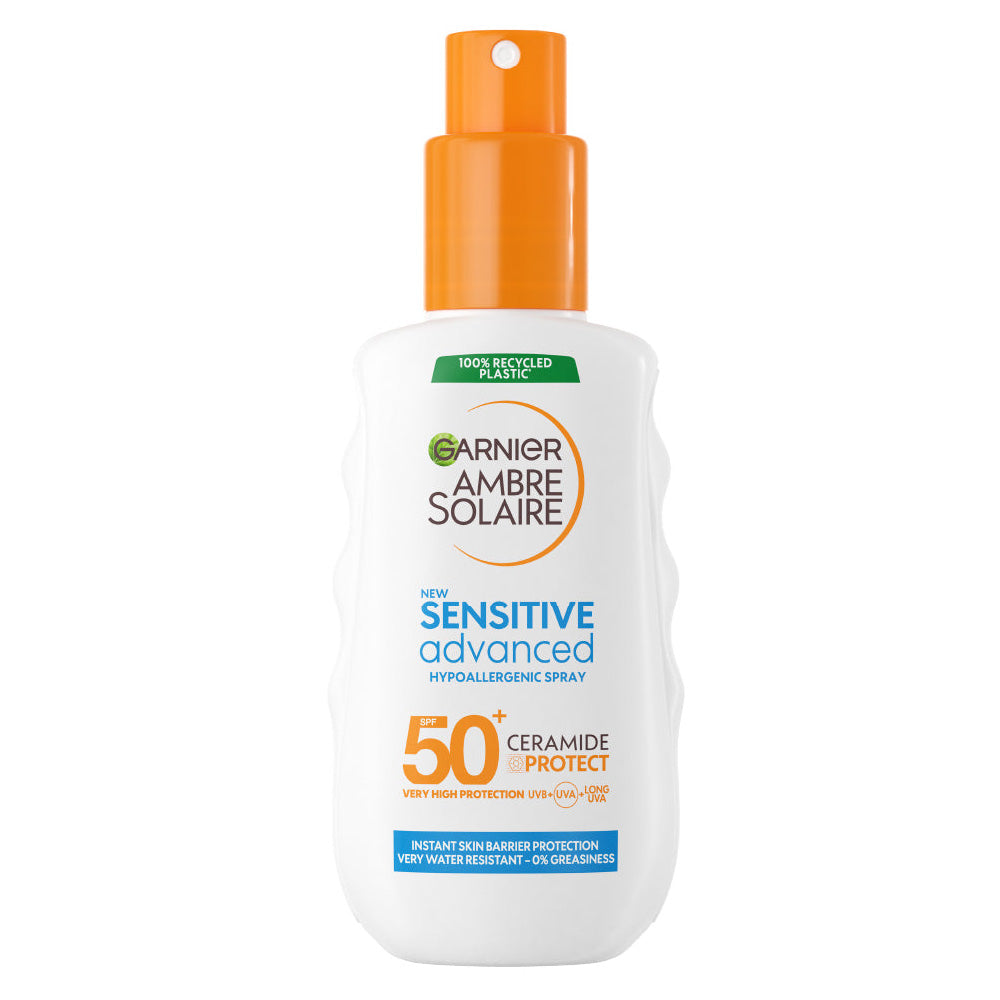 Garnier Ambre Solaire Sensitive Advanced for Adults SPF50 offers very high sun protection for sensitive skin, protecting against both UVA and UVB rays, while being water-resistant and suitable for use in intense sun exposure.