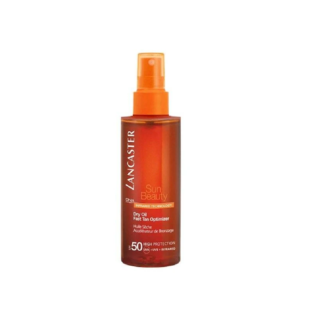 lancaster sun beauty fast tan dry oil spf50 protects, beyond uva and uvb, against visible light including blue light and infrared. sun repair system composed of peptides helps to repair the damages linked to sun exposure and reinforces the resistance of the skin to photo-ageing.