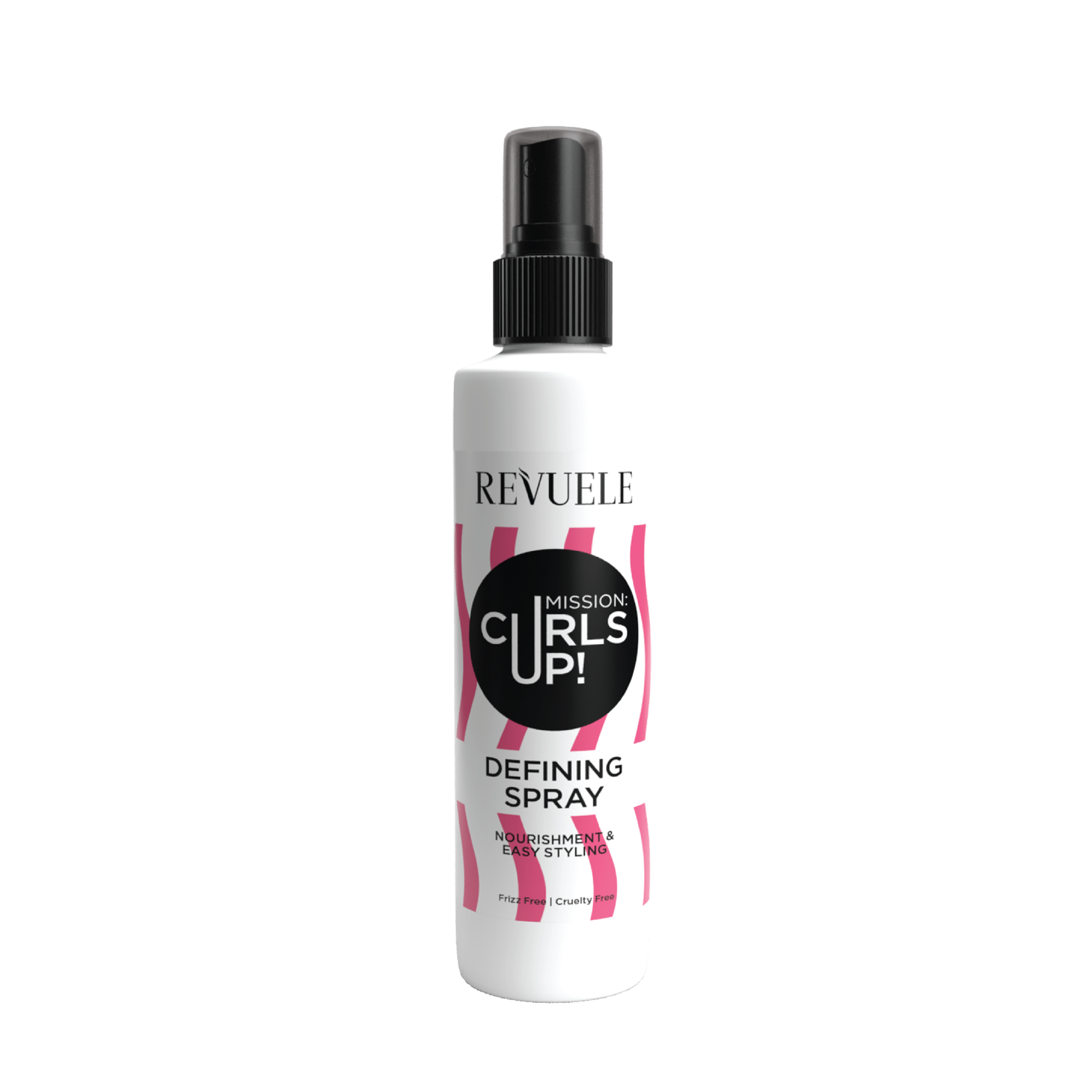 the revuele mission: curls up! defining spray is a styling product designed specifically for curly and wavy hair. it enhances curl definition, reduces frizz, and provides lasting hold while maintaining natural bounce and softness.
