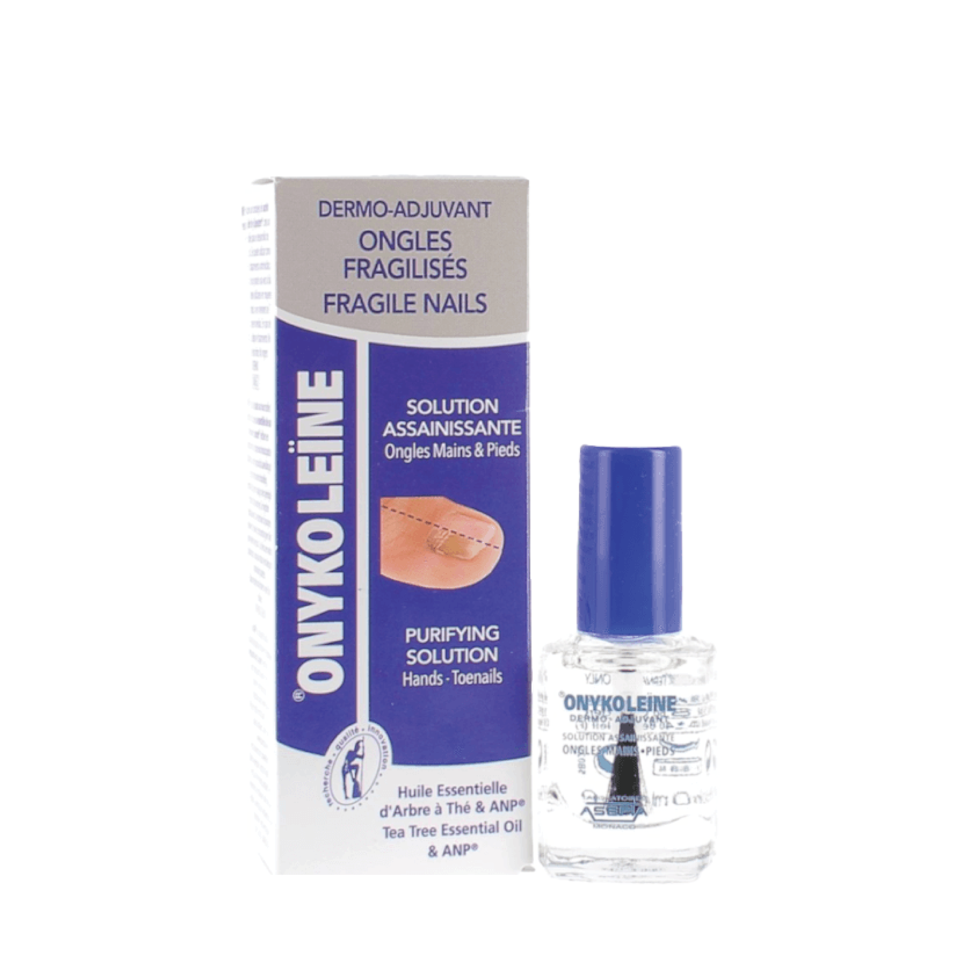 asepta onykoleine purifying solution for fragile nails this solution contains two patented ingredients combined with an essential oil complex to strengthen and embellish weak and yellowed nails. used on a regular basis, this solution helps to keep nails healthy looking. the nails are less yellow and shinier.
