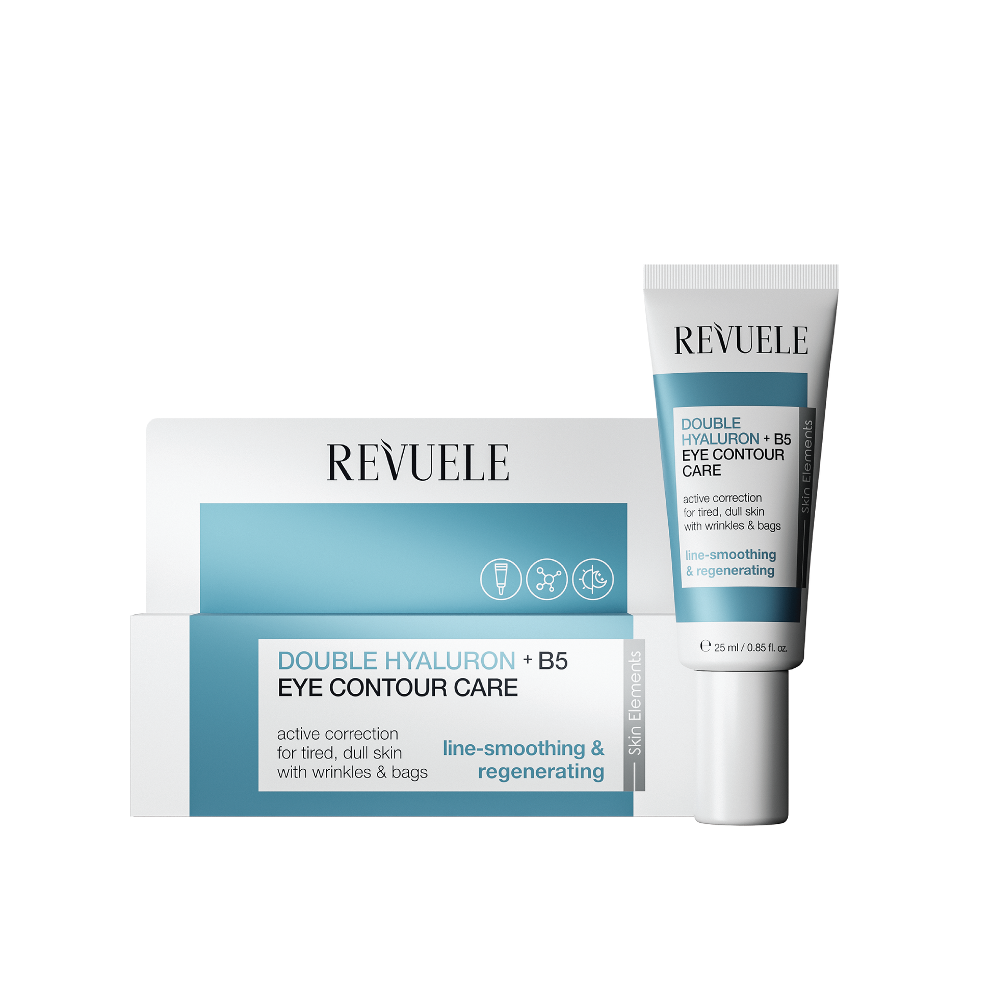 revuele double hyaluron + b5 eye contour care is a specially formulated treatment designed to hydrate, nourish, and reduce the appearance of puffiness and dark circles around the delicate eye area. enriched with two types of hyaluronic acid and vitamin b5, this eye cream helps to replenish moisture, smooth fine lines, and promote a refreshed, rejuvenated look.