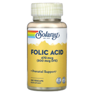 Solaray Folic Acid 470 Mcg is a dietary supplement that provides folic acid to women to reduce the risk of having children with birth defects or spina bifida.
