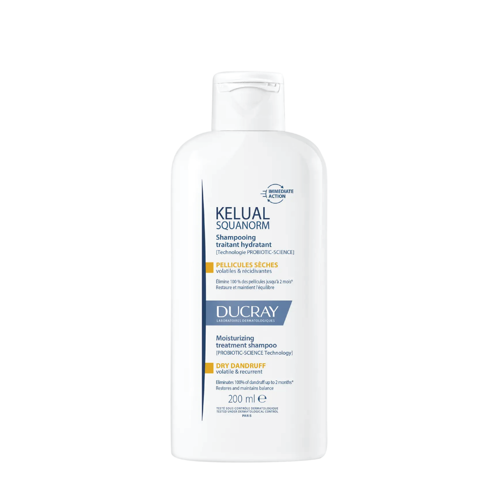 ducray squanorm anti dandruff treatment shampoo - dry dandruff lastingly eliminates dry non-adherent dandruff and purifies the scalp. provides rapid, long-lasting action thanks to specific anti-dandruff active ingredients. gently removes non-sticky dandruff and soothes the scalp. its creamy texture makes it pleasant to apply.
