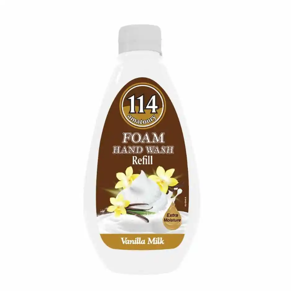 amatoury 114 hand wash milk – vanilla milk is a soothing, extra-moisture hand wash formulated without parabens and triclosan. enriched with natural moisturizing agents, it keeps your hands clean and soft while delivering a long-lasting vanilla fragrance. its extra-rich foam ensures effective cleansing with minimal water usage, making it an environmentally friendly choice. ideal for maintaining hand hygiene in kitchens, bathrooms, and public spaces.