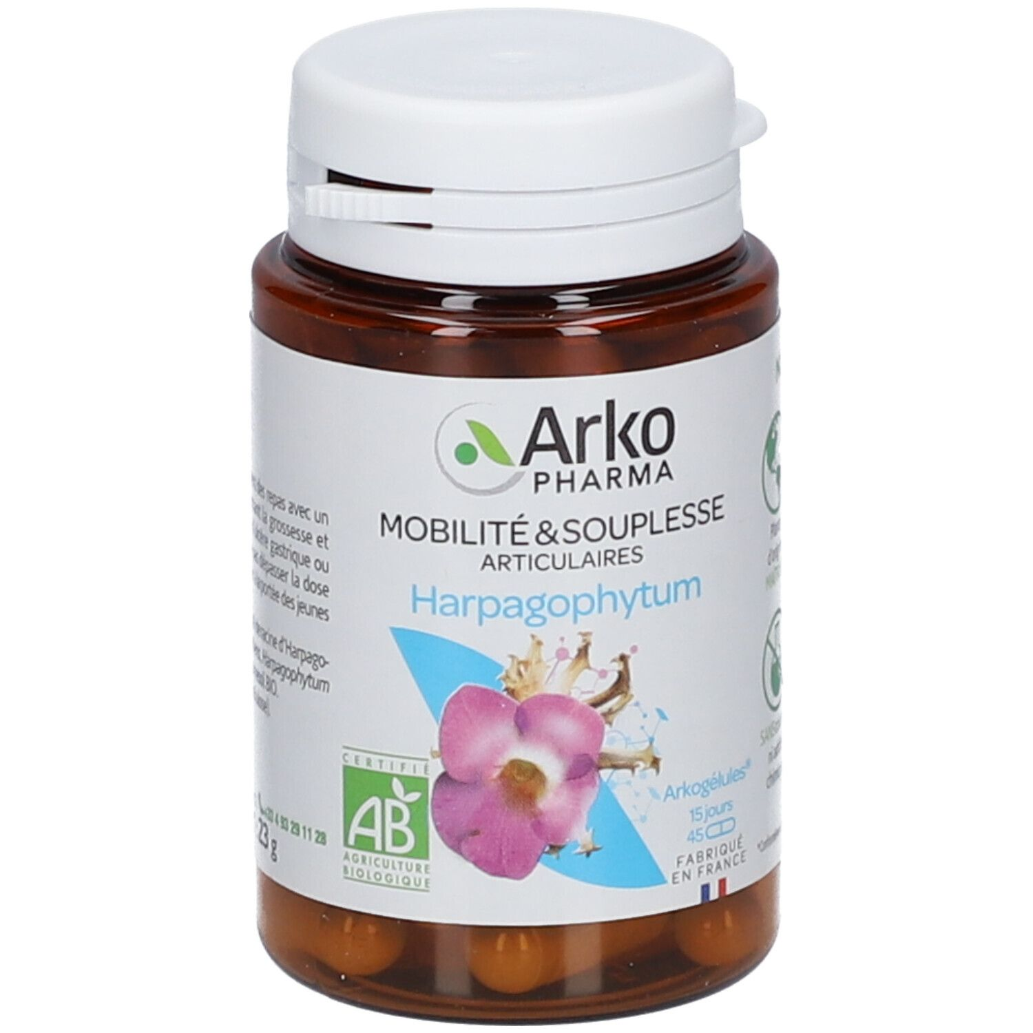 arkopharma arkogélules bio harpagophytum: harpagophytum is a plant originating from the south of the african continent which grows wild, particularly in the kalahari desert (namibia, botswana). its name "devil's claw" comes from its fruits, which have sharp, curved hooks and are caught in the fleece and hooves of antelopes.