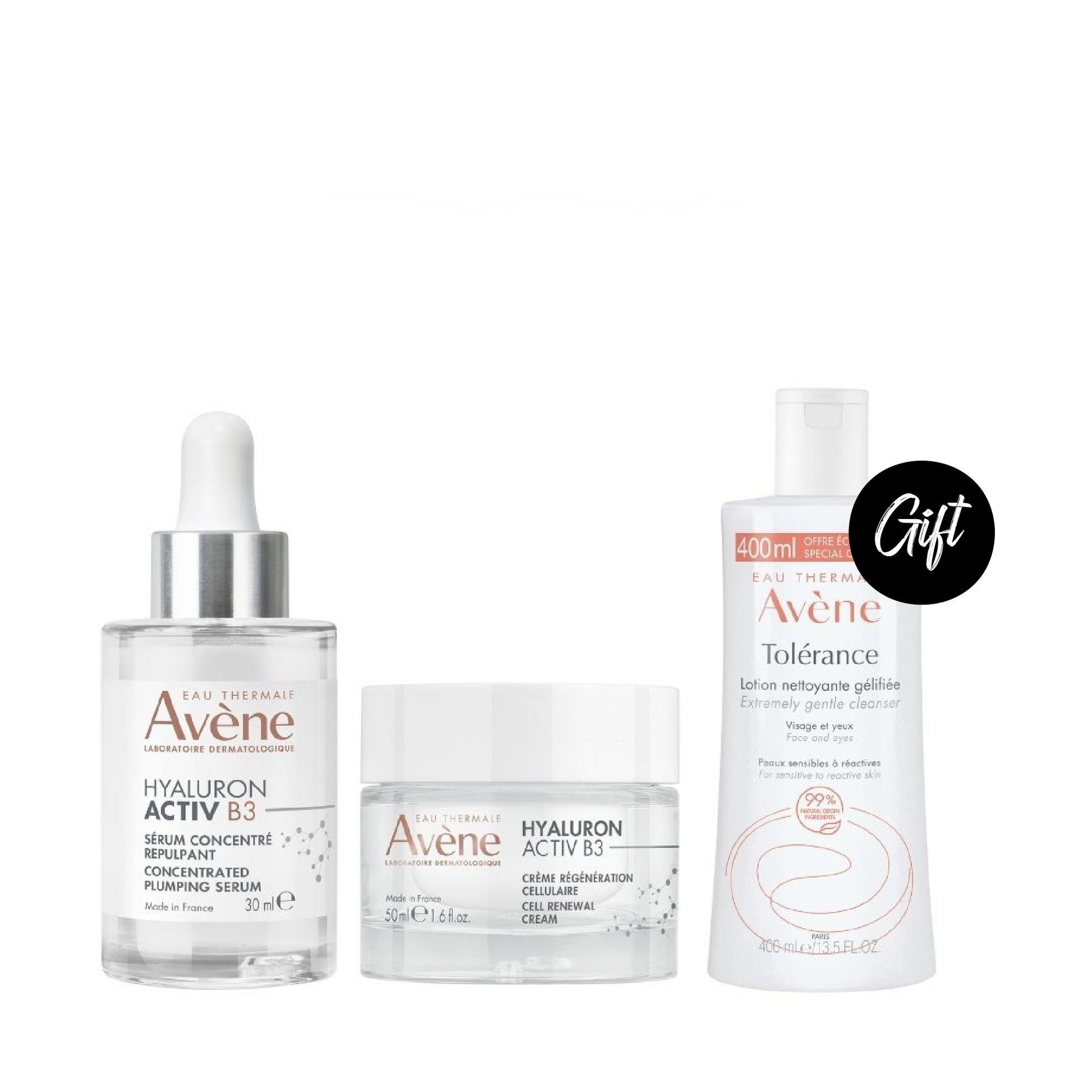 1. avene hyaluron activ b3 concentrated plumping serum enhance your skincare routine with our hyaluron activ b3 concentrated plumping serum. this potent serum visibly reduces fine lines and wrinkles, firms and hydrates the skin, and strengthens the skin barrier with niacinamide. achieve a plump, youthful appearance with twice-daily use.