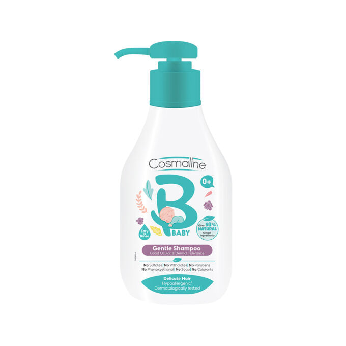 cosmaline baby gentle shampoo is a mild, dermatologically tested shampoo formulated specifically for your baby's delicate hair and scalp. with over 93% natural origin ingredients, it gently cleanses and moisturizes, leaving hair soft, shiny, detangled, and subtly scented. the shampoo is free from sulfates, parabens, phthalates, soap, phenoxyethanol, and colorants, ensuring a safe and gentle experience for your little one.