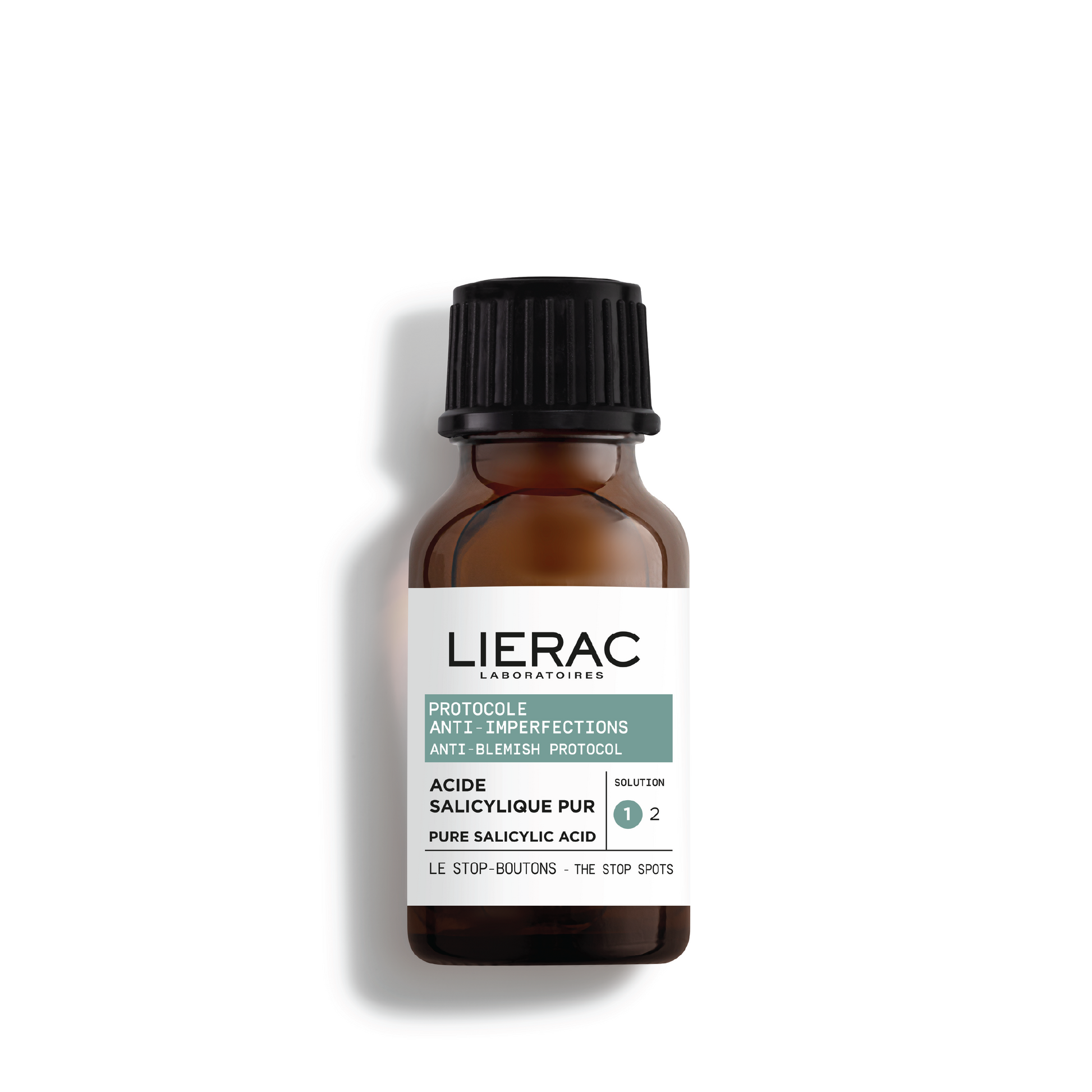 lierac protocole anti-blemish the stop spots is a targeted spot treatment designed to address localized imperfections such as pimples, blackheads, and residual marks. its formula combines active ingredients like pure salicylic acid, zinc gluconate, and calamine powder to purify and soothe the skin. the product is suitable for normal, combination, and oily skin types and is free from fragrances, making it ideal for sensitive skin.