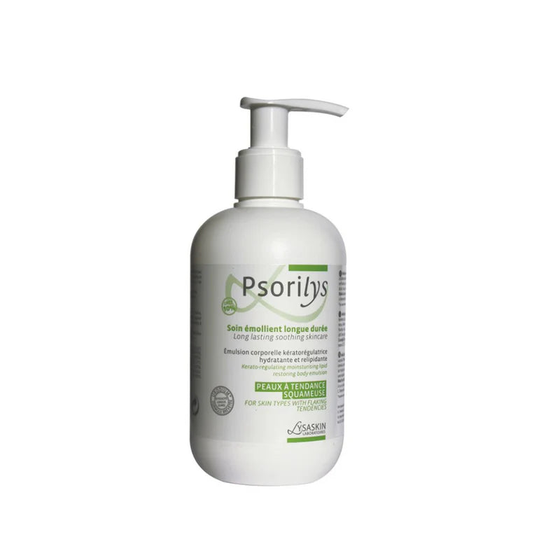 lysaskin psorilys moisturizing lotion is a specialized emollient designed to address dry, flaky skin conditions such as psoriasis and keratosis pilaris. its formulation combines hydrating, keratolytic, and lipid-restoring ingredients to soothe and repair the skin barrier.