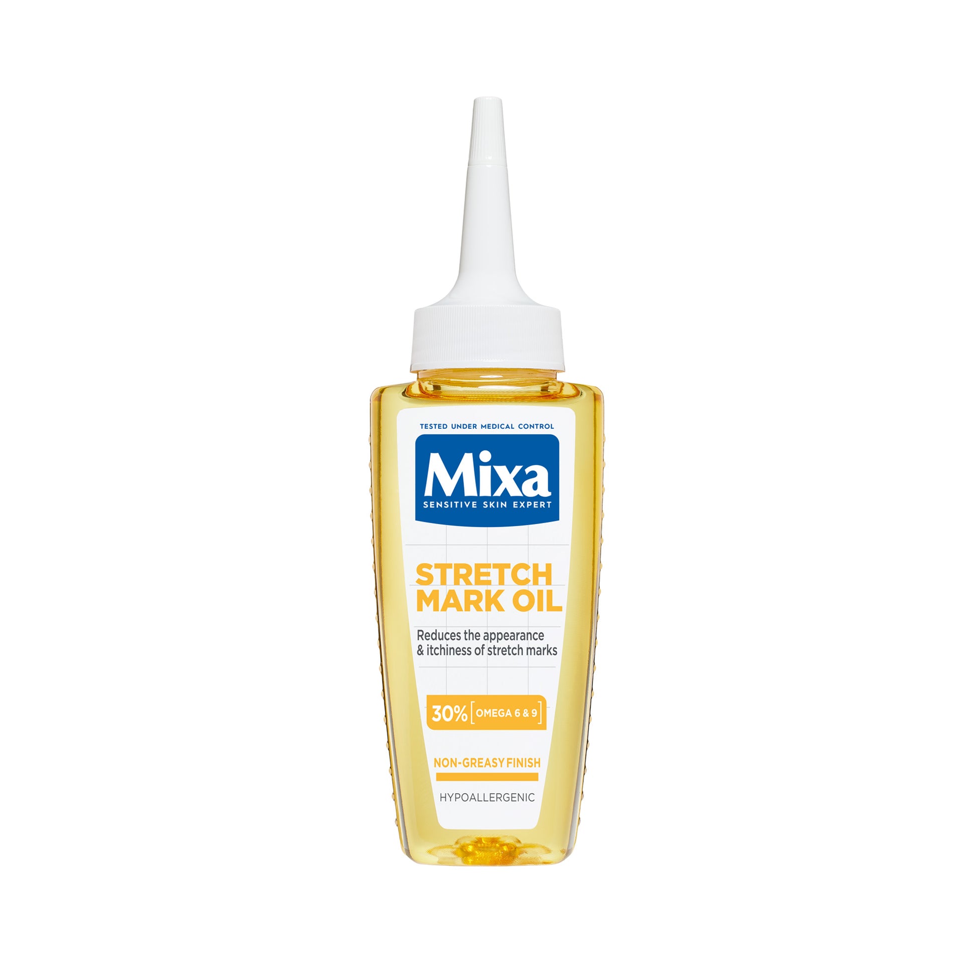 mixa stretch mark oil is a nourishing dry body oil specially formulated to reduce the visibility of stretch marks, soothe itchiness and improve skin elasticity. its light, non‑greasy texture absorbs quickly, leaving skin soft and comfortable. with a high proportion of omega‑6 and omega‑9 fatty acids, this oil nourishes and helps support the skin during changes such as pregnancy, weight fluctuations or growth phases. it’s suitable for sensitive skin and is dermatologically tested for tolerance.