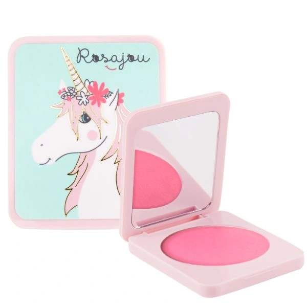 rosajou - pink vegan blush in a mirror case, there is a compact pink powder with golden highlights : to make the little cheeks rosy and lightly color the eyelids.