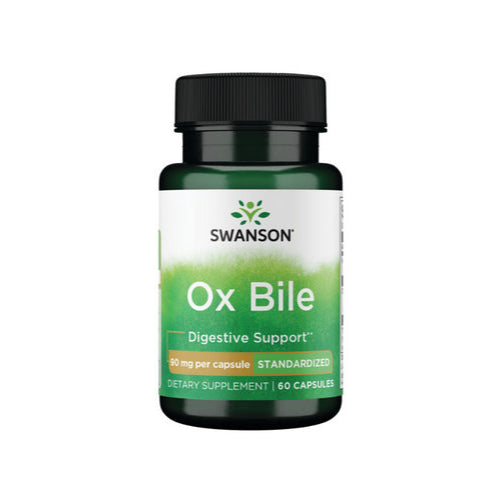 swanson ox bile is a dietary supplement designed to support healthy digestion, particularly the breakdown and absorption of dietary fats. each capsule contains 90 mg of bovine-derived ox bile powder, standardized to deliver a minimum of 45% cholic acid—the primary bile acid in humans. this formulation aids in the digestion of fats and fat-soluble vitamins like a, d, e, and k, promoting overall digestive health.