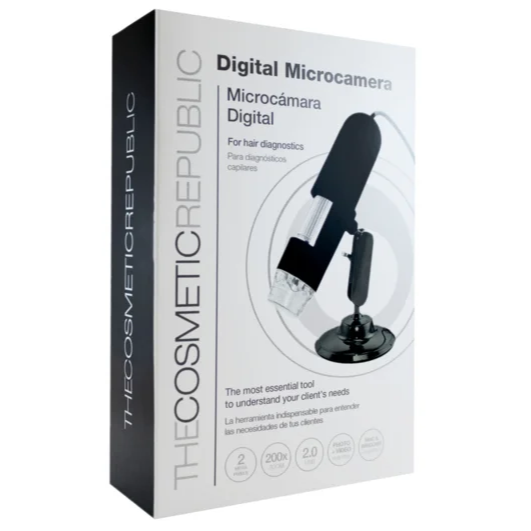 the cosmetic republic digital microcamera: the cosmetic republic offers an advanced tool for precise and detailed hair and scalp diagnosis. the micro camera is specially made to help carry out a diagnosis with a resolution of 2 megapixels, this micro camera captures sharp and detailed images, allowing an in-depth view of the hair and scalp, it also offers a digital zoom up to 200x to deepen even the smallest details. this micro camera is easy to install, in fact inside the package you will find everything you need to offer an optimal service to your customers. box contents: micro camera, usb cable, installation cd and user manual. compatible with windows 2000/xp/vista/win7 or mac os x 10.5 and later operating systems.