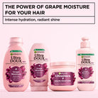 Ultra Doux Hair Conditioner Moisturizing Grape Water and Grape Seed Oil A lightweight moisturizing conditioner enriched with grape water and grape seed oil to hydrate and soften hair without weighing it down. It helps detangle hair easily while restoring smoothness, shine, and natural vitality. The formula is designed to leave hair feeling fresh, silky, and manageable, making it ideal for regular use on normal to dry hair.